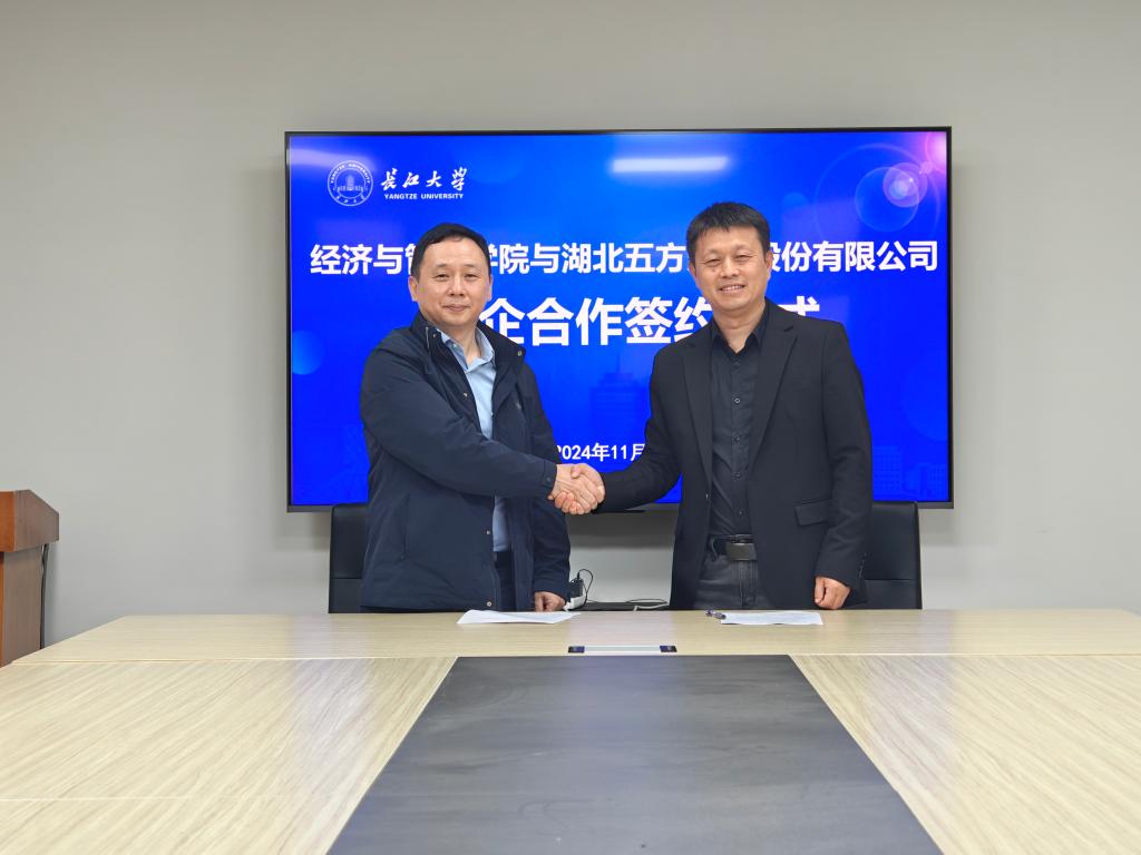讲座结束,副院长王华强代表学院与湖北五方光电股份有限公司人力总监罗义兵签署了实习基地共建协议,为学生们未来实习及择业提供了机会,为校企合作增添了新的平台。