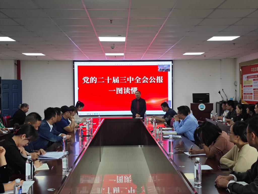 会上,学院党委书记樊帆结合二十届三中全会会议精神的框架图,对会议精神进行了全面而深入的宣讲。他通过生动的讲解和形象的图示,使教职工们更加清晰地理解了会议的核心内容和精神实质,引导大家将会议精神融入日常的教学、科研和管理工作中。大会还组织全体参会人员共同学习了“习近平在全国教育大会上强调 紧紧围绕立德树人根本任务 朝着建成教育强国战略目标扎实迈进”“习近平在全国民族团结进步表彰大会上发表重要讲话强调 推进中华民族共同体建设 巩固发展中华民族大团结”等内容。