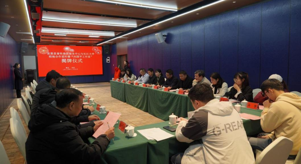 宣恩县委常委(组织部部长)张通军、宣恩县人民政府副县长唐刚、宣恩县委组织部副部长詹德永、湖北大派食品集团董事长陈平权、宣恩县畜牧兽医服务中心集体班子、宣恩县人才工作室成员热情接洽了陈承院长一行。此次合作目的是深入贯彻产教融合、协同育人的方针政策,旨在发挥各自优势,实现资源共享和互利共赢,以推动人才培养、科技支撑和产业发展的深度融合。