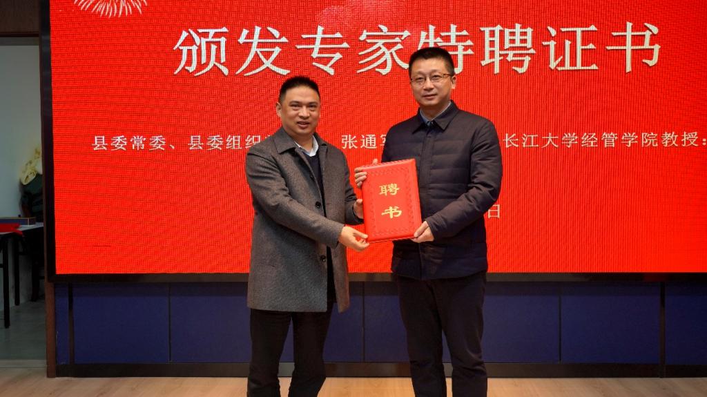 签约仪式上,宣恩县委常委、组织部部长张通军为陈承教授和刘国平博士颁发了人才工作室专家特聘证书,并对此次校企合作给予了高度评价:“长江大学是湖北省重点综合高校,取得了有目共睹的办学成果,贵校坚持把科研成果写在产业发展的第一线,为我县输送了一批优秀的好用的人才,为农业产业发展做出了突出贡献,真诚期盼双方扩大合作范围和领域,共同打造校地合作新典范。”