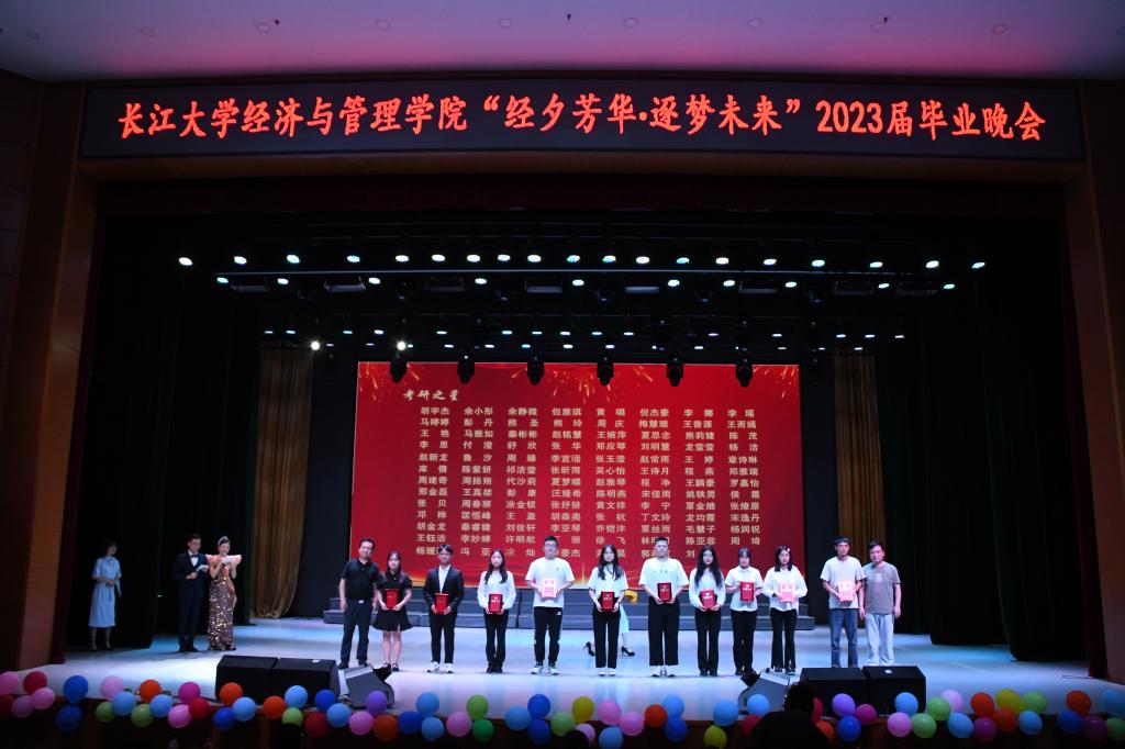 毕业晚会分为“拾忆·情系长大”、“铸梦·经禧年华”、“启程·行远思恩”三个篇章,涵盖了歌曲、舞蹈、小品、情景剧等10余个精彩节目。以入围长江大学精品文艺作品展舞蹈《万疆》拉开表演序幕,此作品是经管学子在充分理解作品内涵基础上不断打磨、排练而形成的舞蹈作品,传达出学生浓浓的爱国情和满满的民族自豪感。乐队现场伴奏表演《起风了》勾起了毕业生对美好大学时光的回忆,从青涩稚嫩到成熟坚定,唯一不变的是赤子追求梦想的决心。原创作品小品《经管联播》以2019级学生大学四年经历为背景,用新颖的形式、网络热梗融合长大校园文化、电商直播秀等带动现场同学呼声阵阵。师生节目《再见长大,你好明天》以歌曲串烧的形式,通过播放2019级四年青春纪念视频为背景,4首歌联唱,嗨翻全场,《再见》、《知足》、《后来》、《你曾是少年》多首热歌联唱,台下的同学们一起挥舞手中的荧光棒,像四年的大学生活说再见。