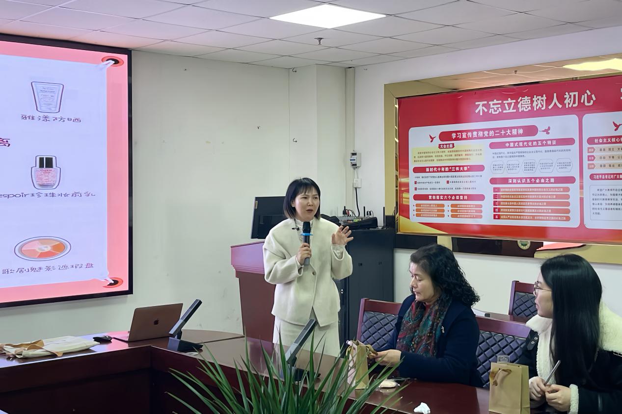 随后,张丽老师围绕“妆点自信,焕发风采”主题,从肤质分析、化妆品选择到化妆技巧运用等维度系统讲授美妆理论,并结合实际案例分享打造日常妆容的经验。