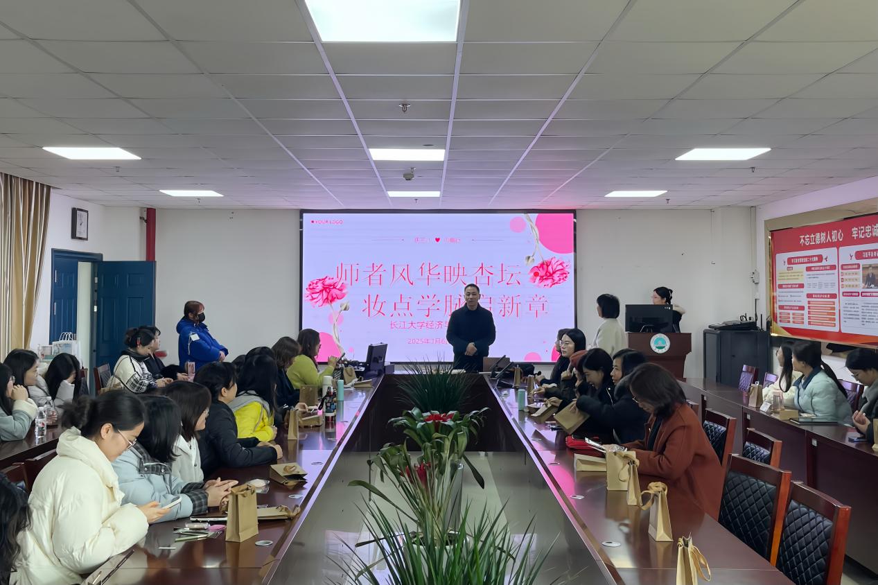 (通讯员 杜哲)为庆祝“三八”国际妇女节,展现新时代女性风采,3月6日14时,必赢线路检测中心于文科楼505会议室举办“师者风华映杏坛,妆点学脉启新章”主题美妆活动,特邀长江大学优秀校友、非凡婚纱创始人张丽老师返校授课,为全院女教师及学生带来职业妆容专题讲座。活动由学院工会主席平先锋主持。