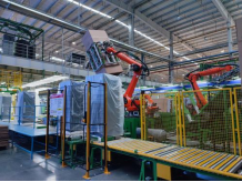 在总装区域,内胆与外壳精准拼装后,迅速进入密封、检漏和包装环节。机器人精准完成铰链拧紧、贴标、打包等工序,成品通过传送带直达库房。